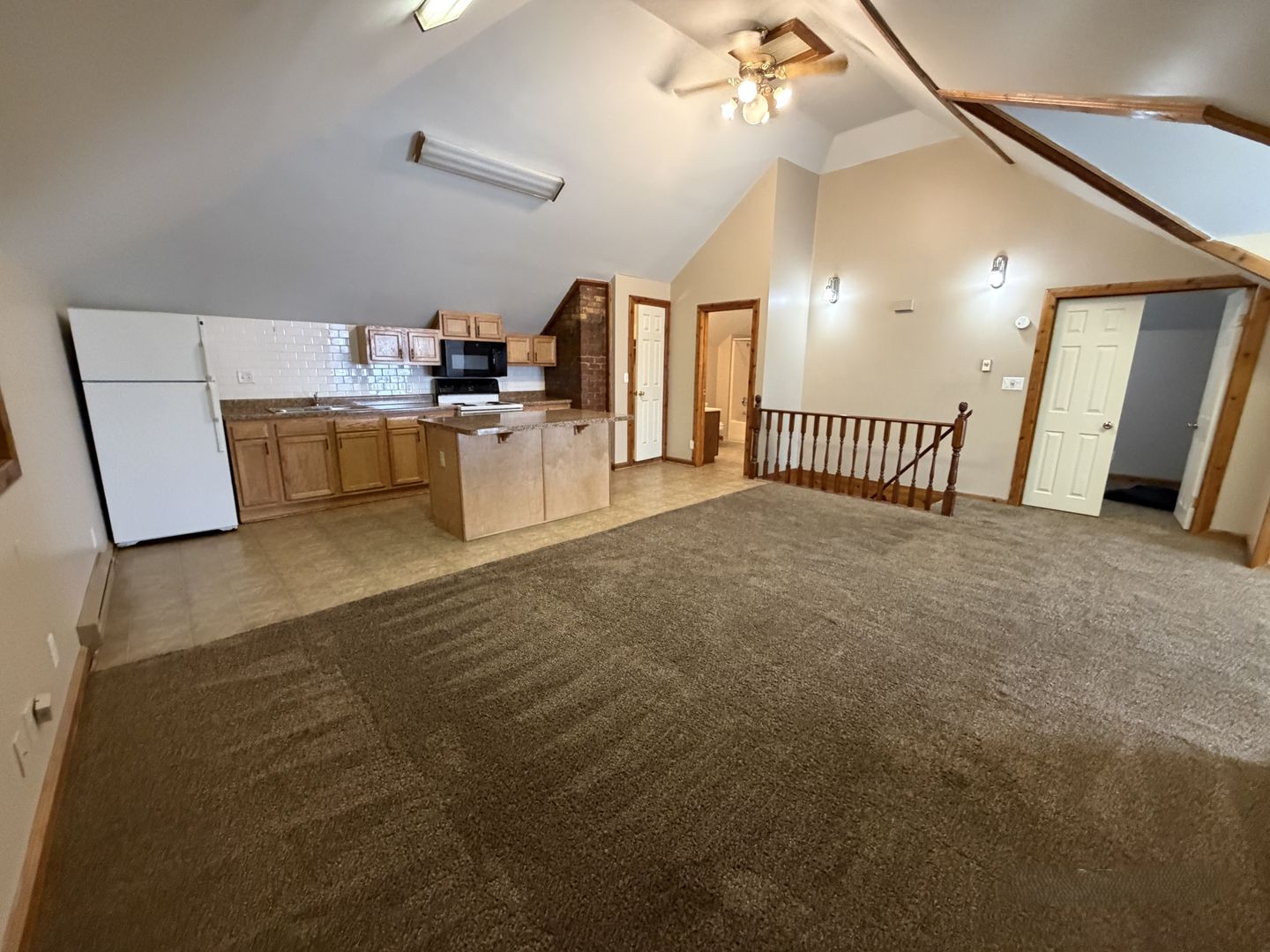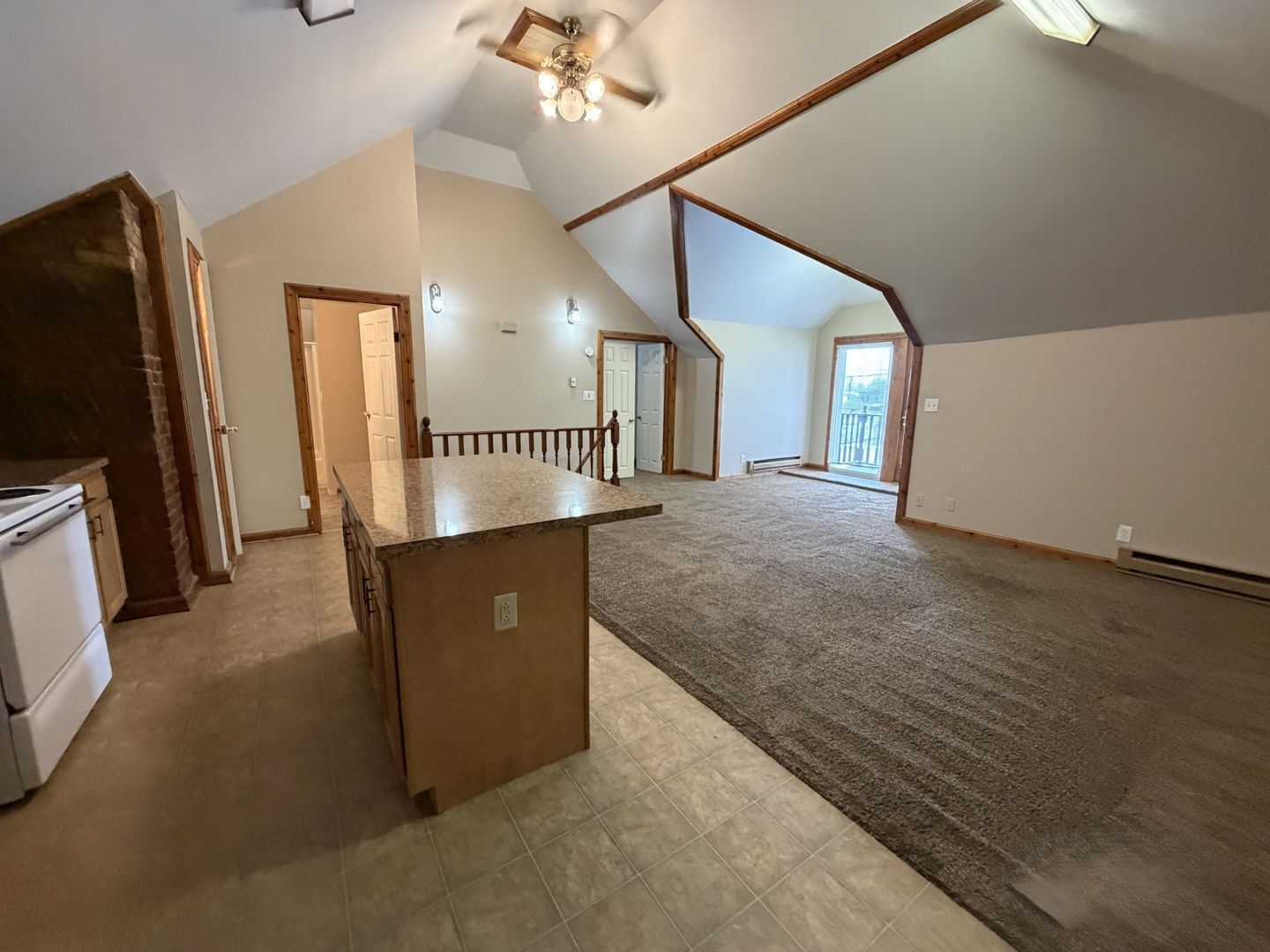 Large one bedroom apartment located off S Harrison St. This apartment is located on the third floor and comes with cathedral ceilings, a newer kitchen, AC, and nearby coin laundry.